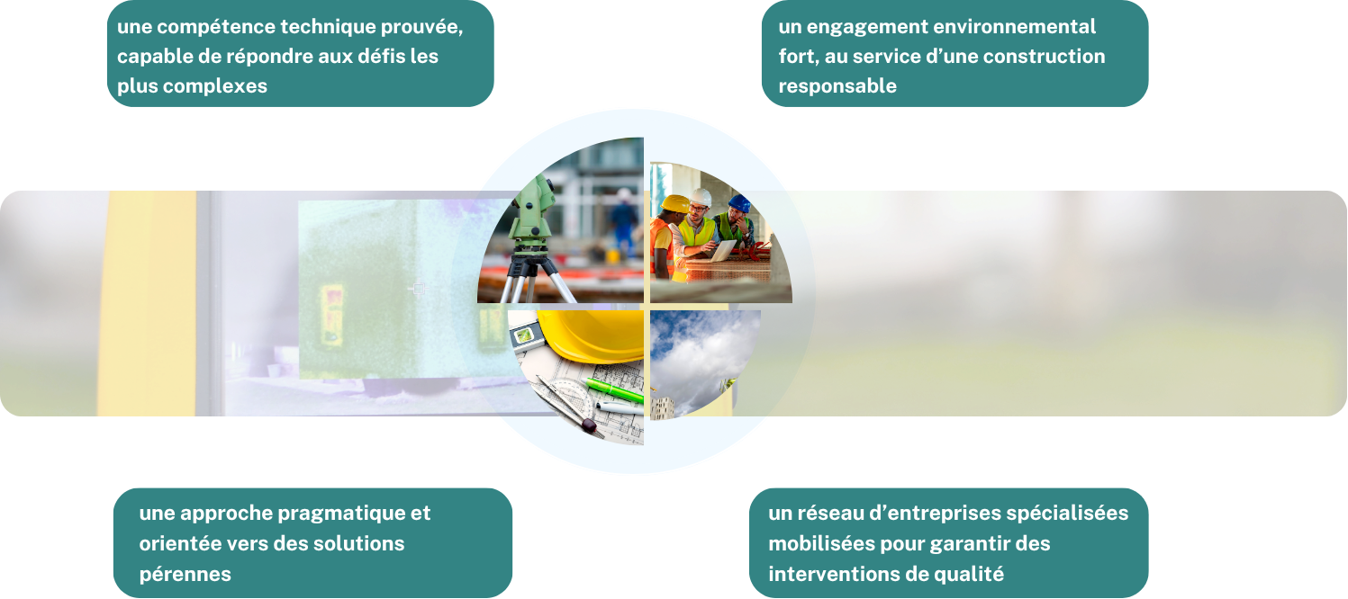 Notre mission est claire, préserver les ouvrages, les réparer afin de réduire l’empreinte écologique, le coût économique en répondant aux enjeux technique complexe que sont vos projets.